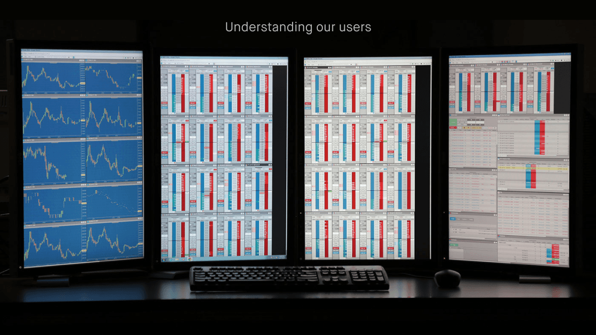 Research showed professional traders favor complex, data-dense screens with cryptic labels and highly customized layouts. Traditional personas didn’t fit, so we prioritized four shared needs: customization, multi-market trading, speed, and orientation—guiding us to design flexible solutions for efficient workflows.